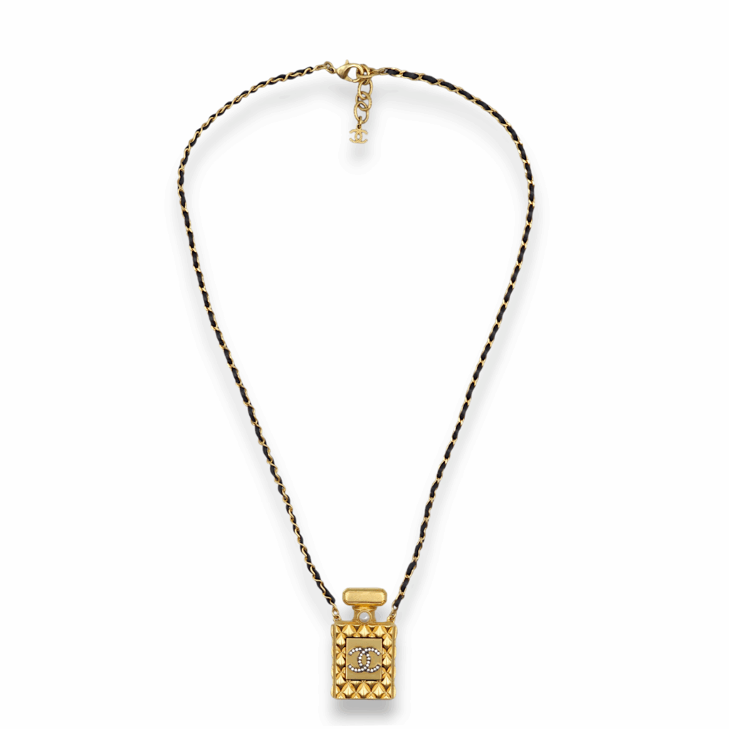 Coco Perfume Bottle Black Necklace in Lambskin, Gold hardware