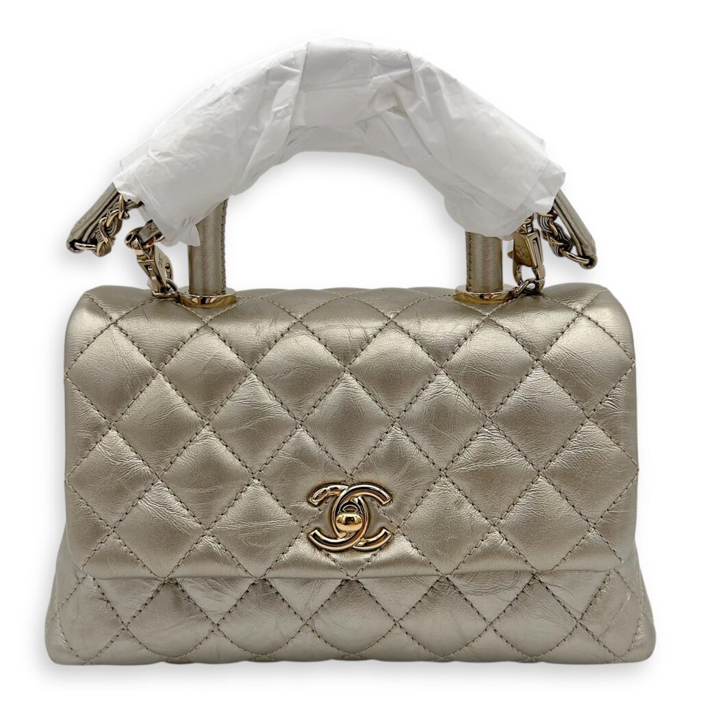 Coco Small Gold Top Handle Bag in Calfskin, Gold hardware