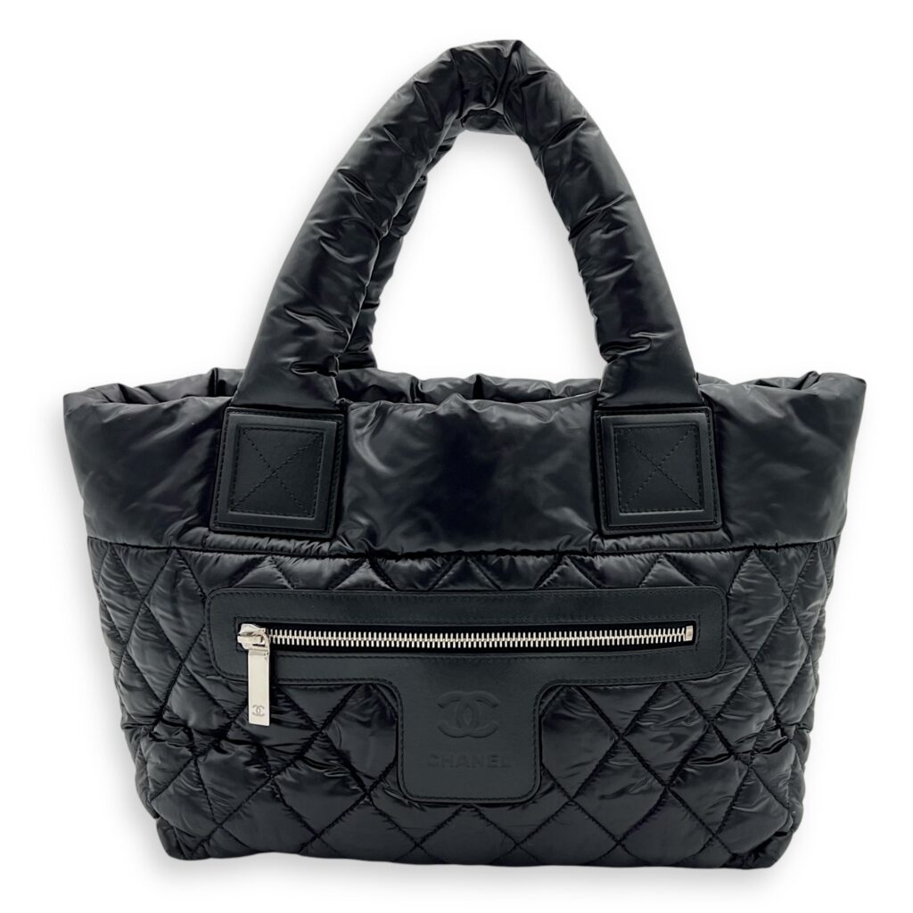 Coco Cocoon Tote Bag Black in Nylon, Silver hardware