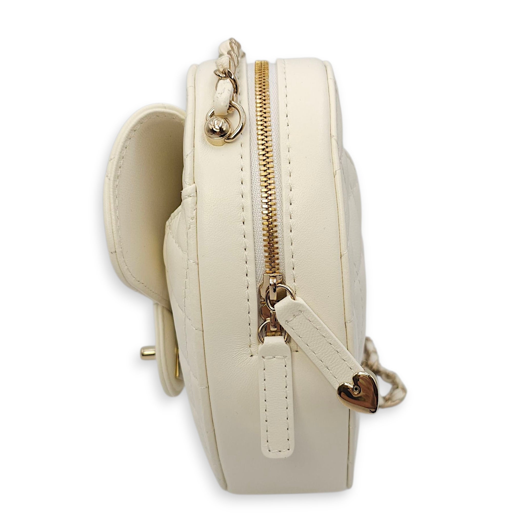 CC White Heart Bag in Lambskin, Champagne hardware