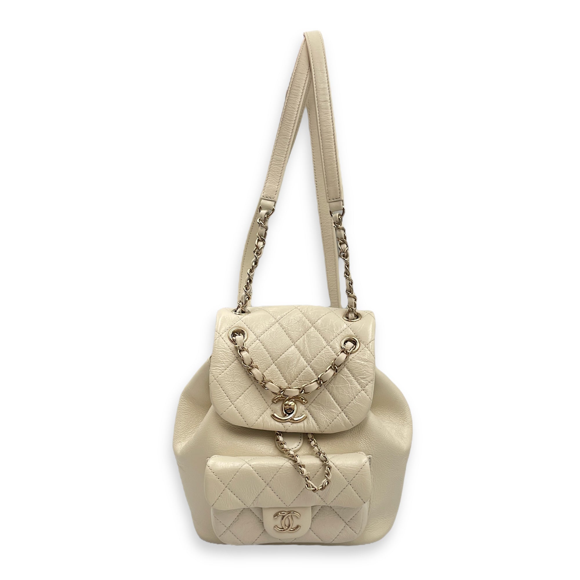 Be the first to review “Duma Mini White Backpack in Caviar Leather, Gold hardware”