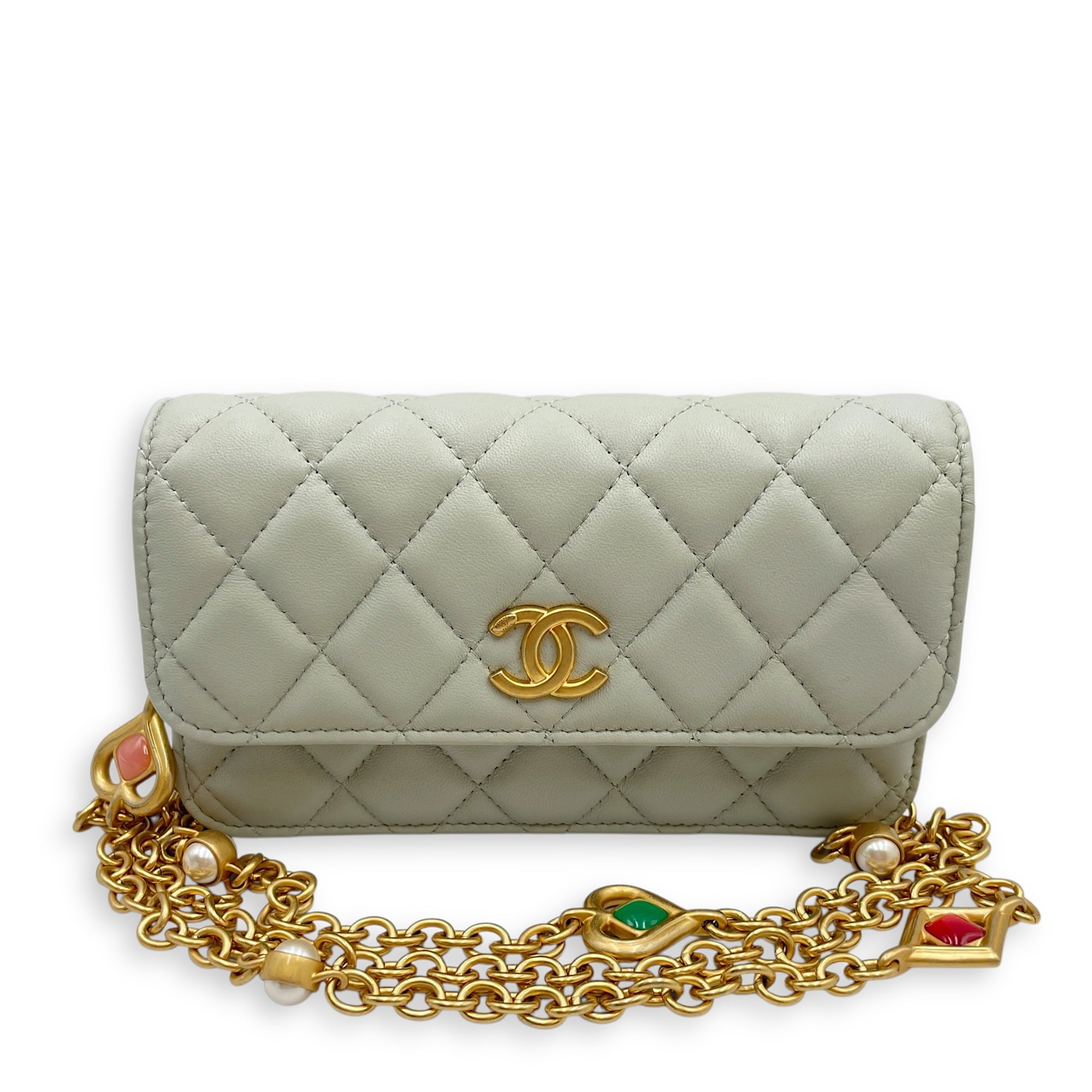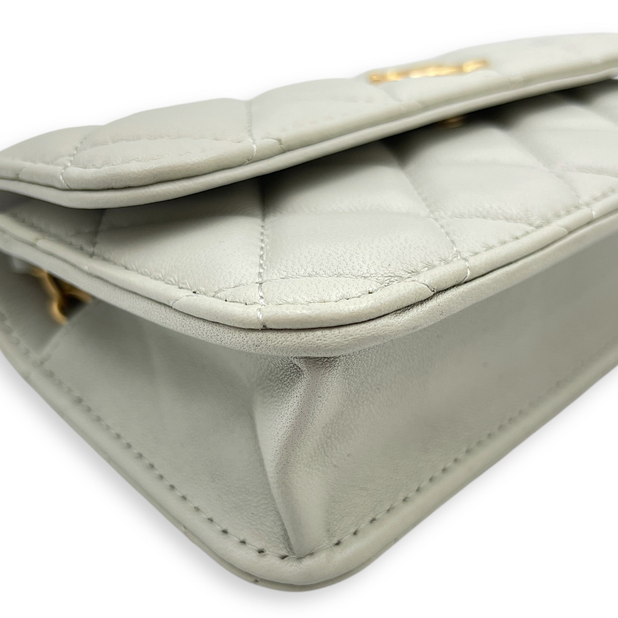 Be the first to review “Phone Holder Light Grey Crossbody Bag in Lambskin, Gold hardware”