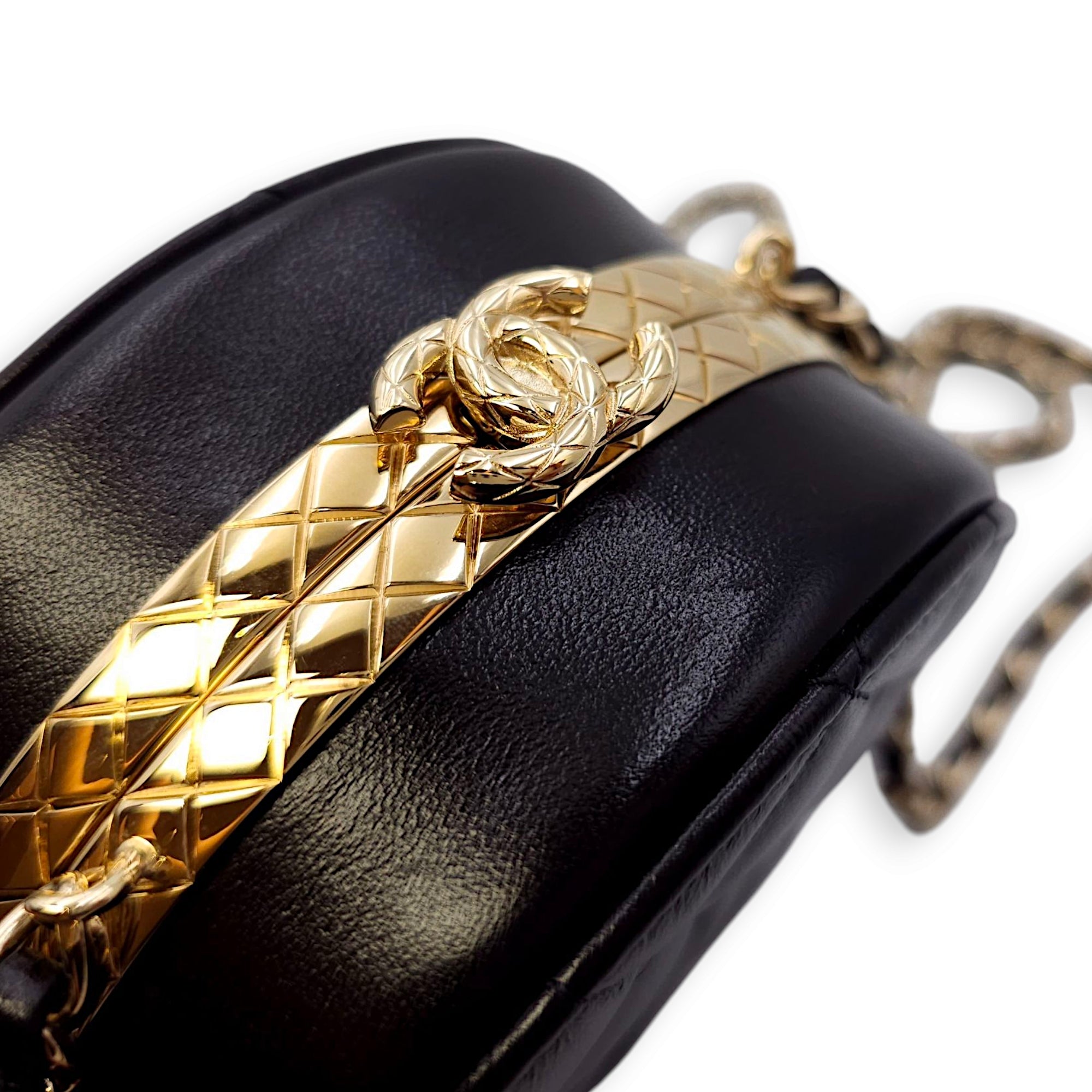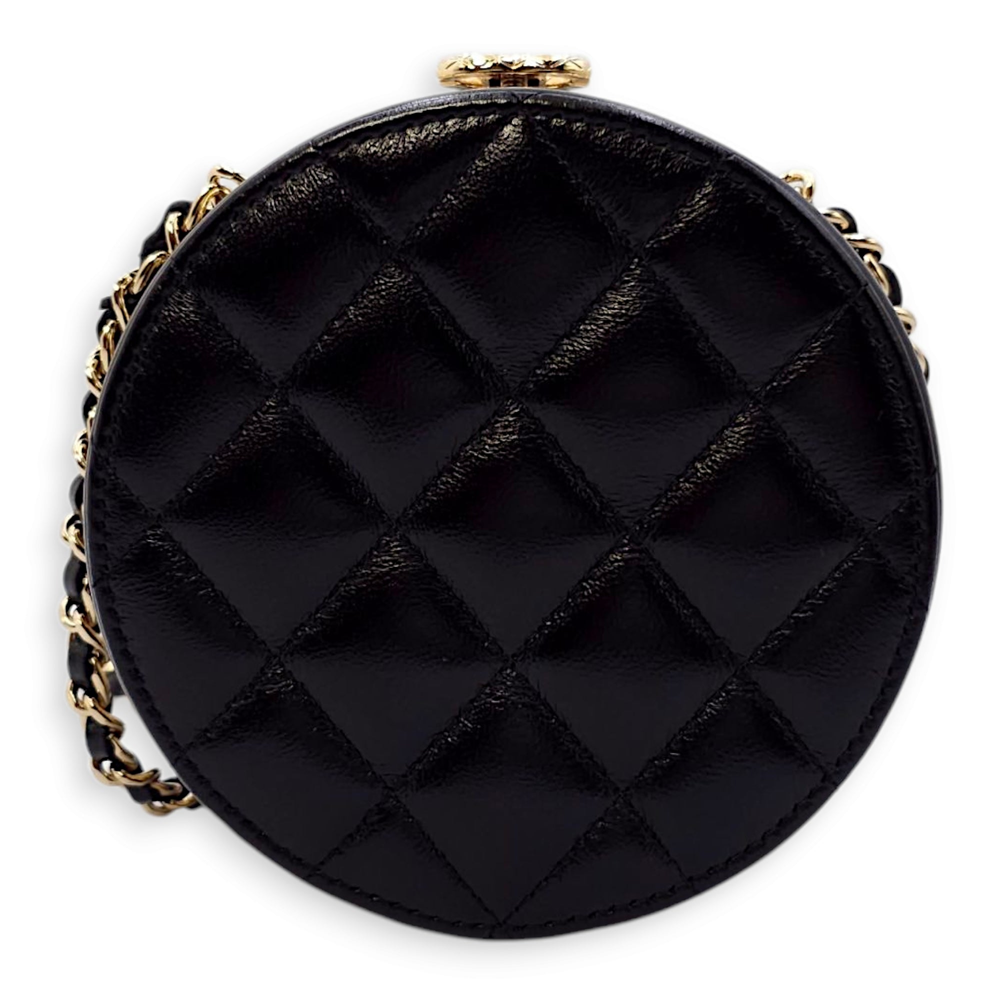 Be the first to review “Quilted Filigree Chain Around Circle Black Crossbody Bag in Lambskin, Gold hardware”