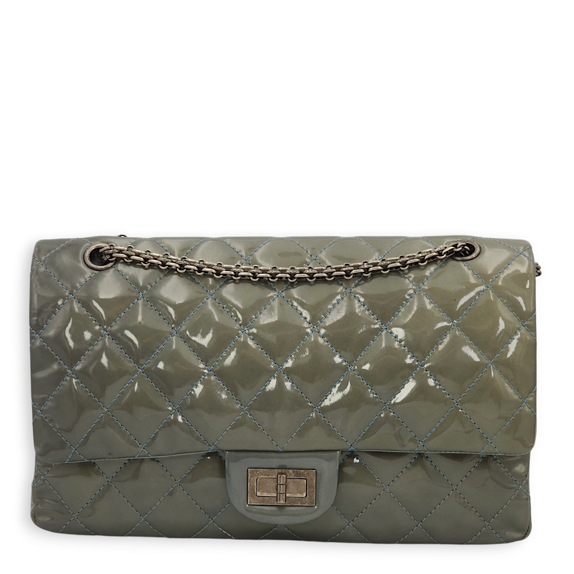 Reissue 227 (31cm) Metallic Blue Crossbody Bag in Patent Leather, Ruthenium hardware