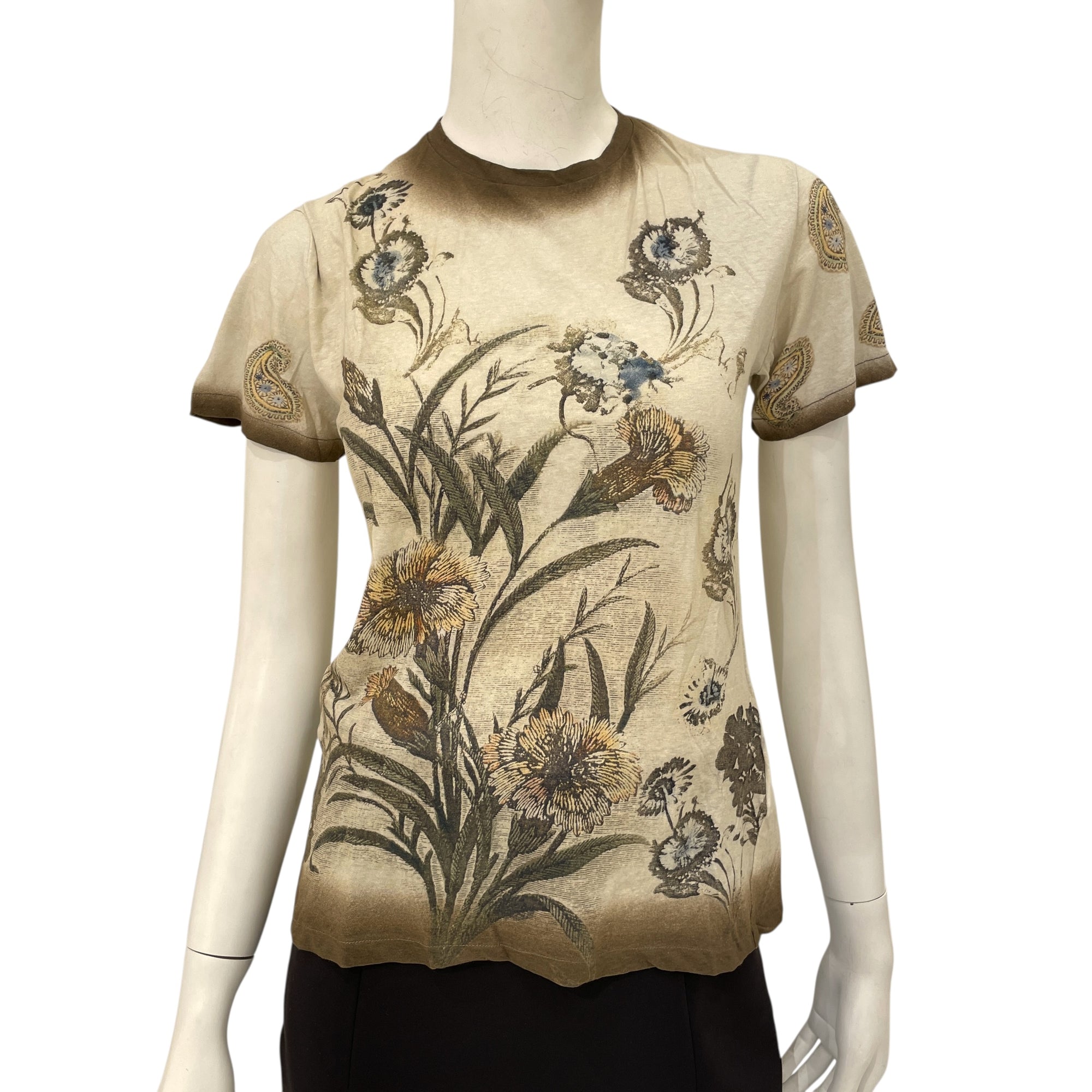 S/S Brown Floral T-shirt XS Brown Ready-To-Wear in Cotton