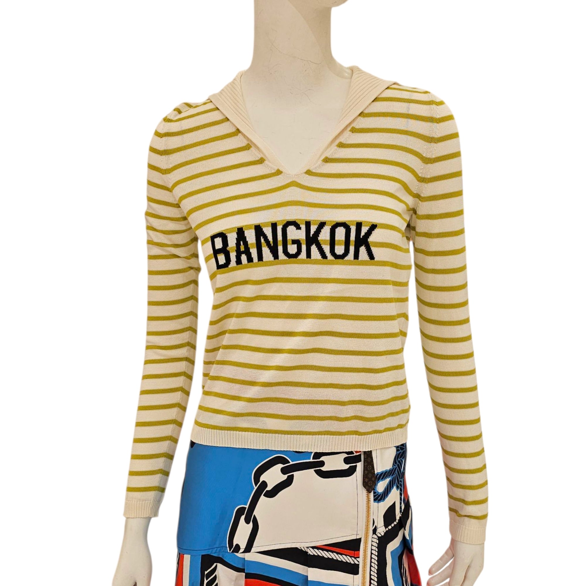 Be the first to review “Striped V-Neck Sweater 34 Green Ready-To-Wear in Silk”